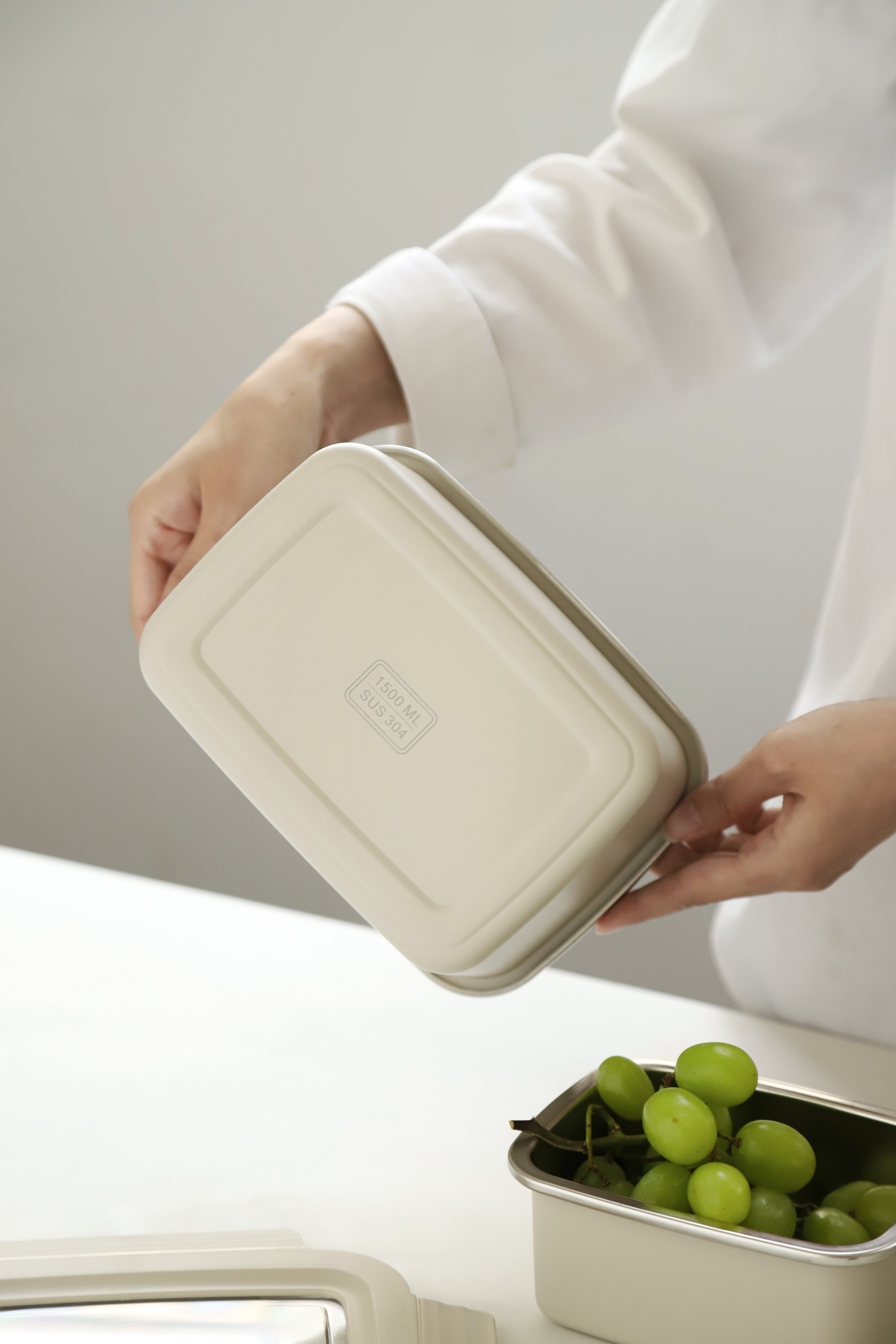 Korean Style Rectangular Food Containers | Stainless Steel/Plastic with Airtight Lids, Solid Color (Beige/Brown) & Spray-Painted Design, for Meal Prep, Fridge Storage, Leftovers