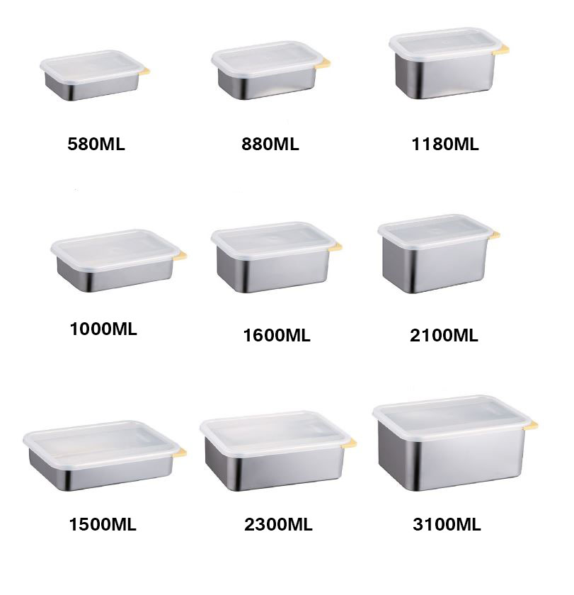 Großhandel Microwavable Edelstahl Restaurant Lebensmittel Container. Dieser Edelstahl-Lebensmittelbehälter ist langlebig, praktisch und schön, geeignet für zu Hause, Restaurant und Outdoor-Gebrauch. Kommerziell kann er die Kosten für den Austausch des Geschirrs reduzieren und das Markenimage verbessern. Gleichzeitig können Sie als Profi Hersteller von LebensmittelbehälternWir unterstützen sowohl die Massenproduktion als auch die Anpassung an Kundenwünsche und können die Größe, die Form oder die Funktion des Deckels an die Bedürfnisse kommerzieller Kunden anpassen, um die individuellen Anforderungen zu erfüllen.