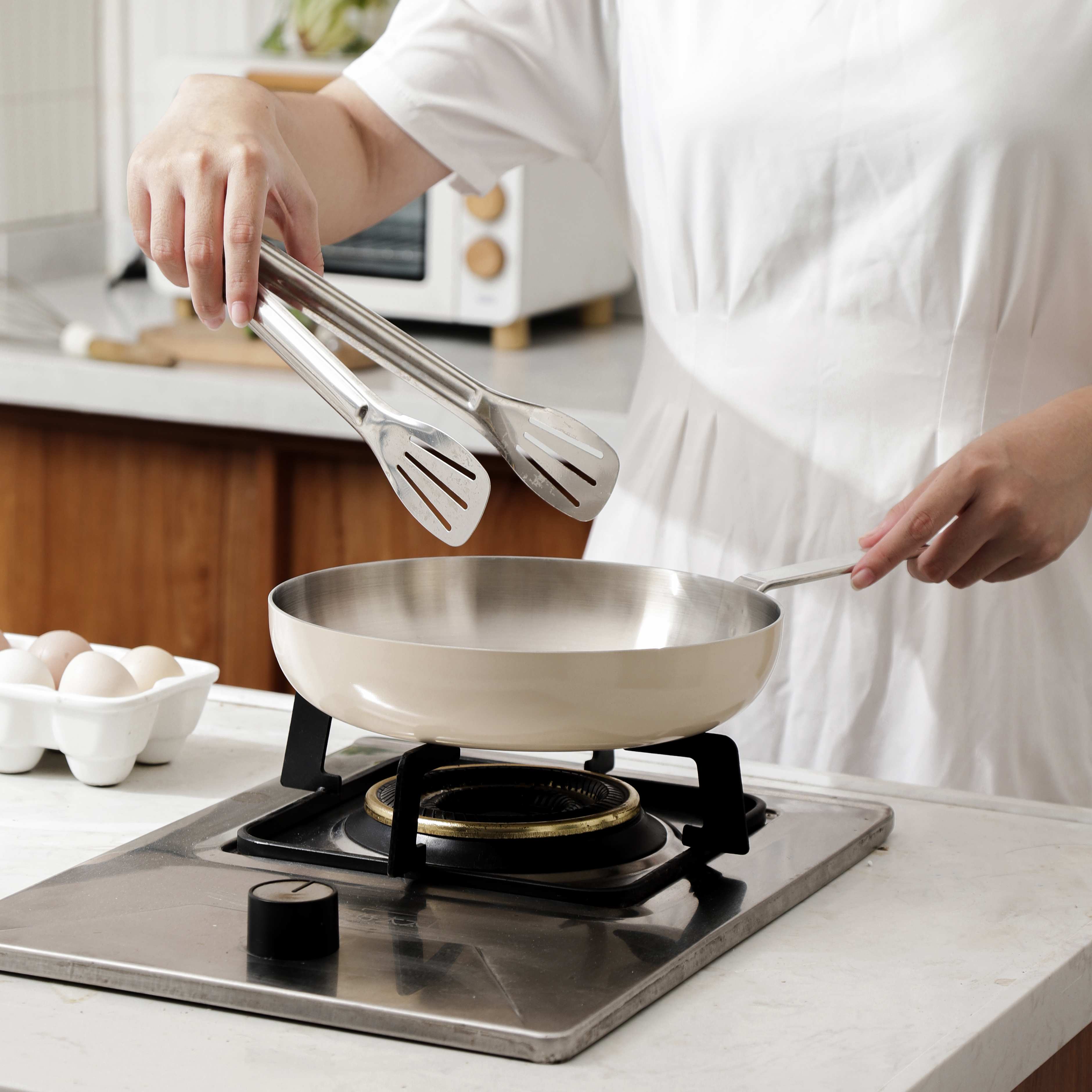 Diese Struktur kombiniert die Langlebigkeit von Edelstahl mit den Vorteilen der Wärmeleitfähigkeit von Aluminium-Kupfer, wodurch die Verkohlung von Hotspots wirksam verhindert und die Gefahr der Metallfreisetzung durch lokale Überhitzung verringert wird.