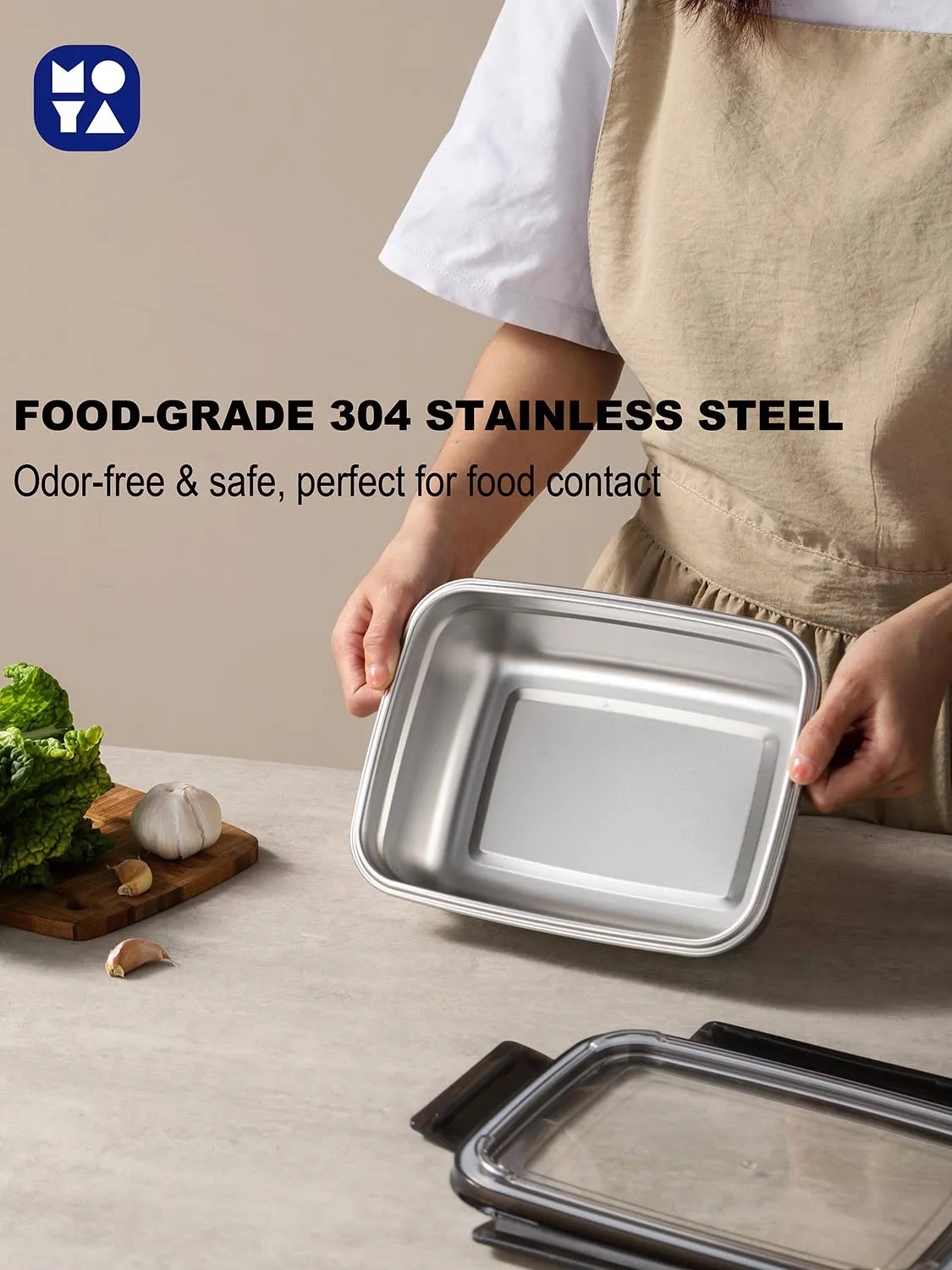 Our containers are made from high-quality 304 stainless steel, a material trusted by chefs and food industry professionals worldwide. It’s non-toxic, BPA-free, and free from harmful chemicals, ensuring that your food stays pure and untainted. Unlike plastic, it won’t retain stains, odors, or flavors from strong foods like garlic, tomato sauce, or curry — keeping your containers fresh and clean for every use.
