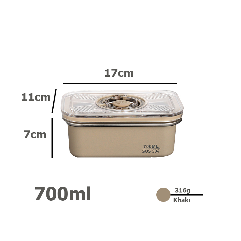 Equipado con una tapa de acero hermética y un anillo de sellado de silicona, formando un fuerte espacio hermético. Bloquea eficazmente el aire y la humedad, evita que se mezclen los olores de los alimentos y que se estropeen, prolongando considerablemente su frescura. Mantiene la calidad de los alimentos refrigerados o almacenados a temperatura ambiente.