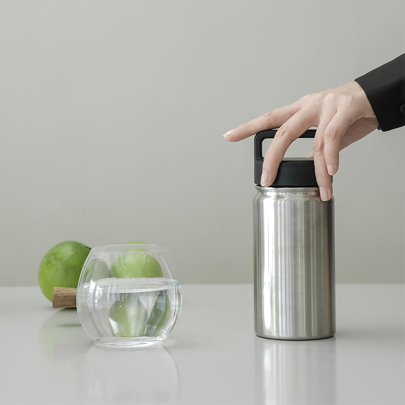 Handle Design: 蓋のデザインは人間工学に基づいており、保温水筒には持ちやすいハンドルが付いている。