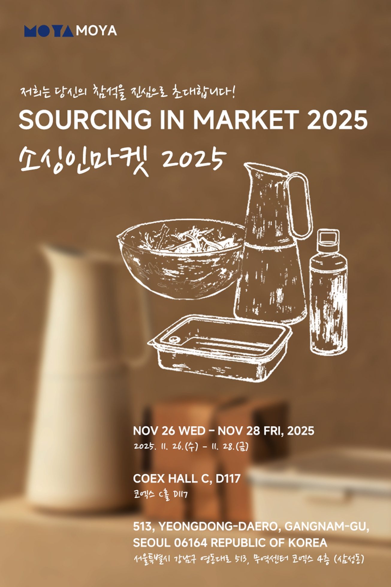 With the philosophy of “Translating the texture of current life into real daily life”, MOYA sincerely invite you to attend Sourcing in Market 2025 / 소싱인마켓 2025!