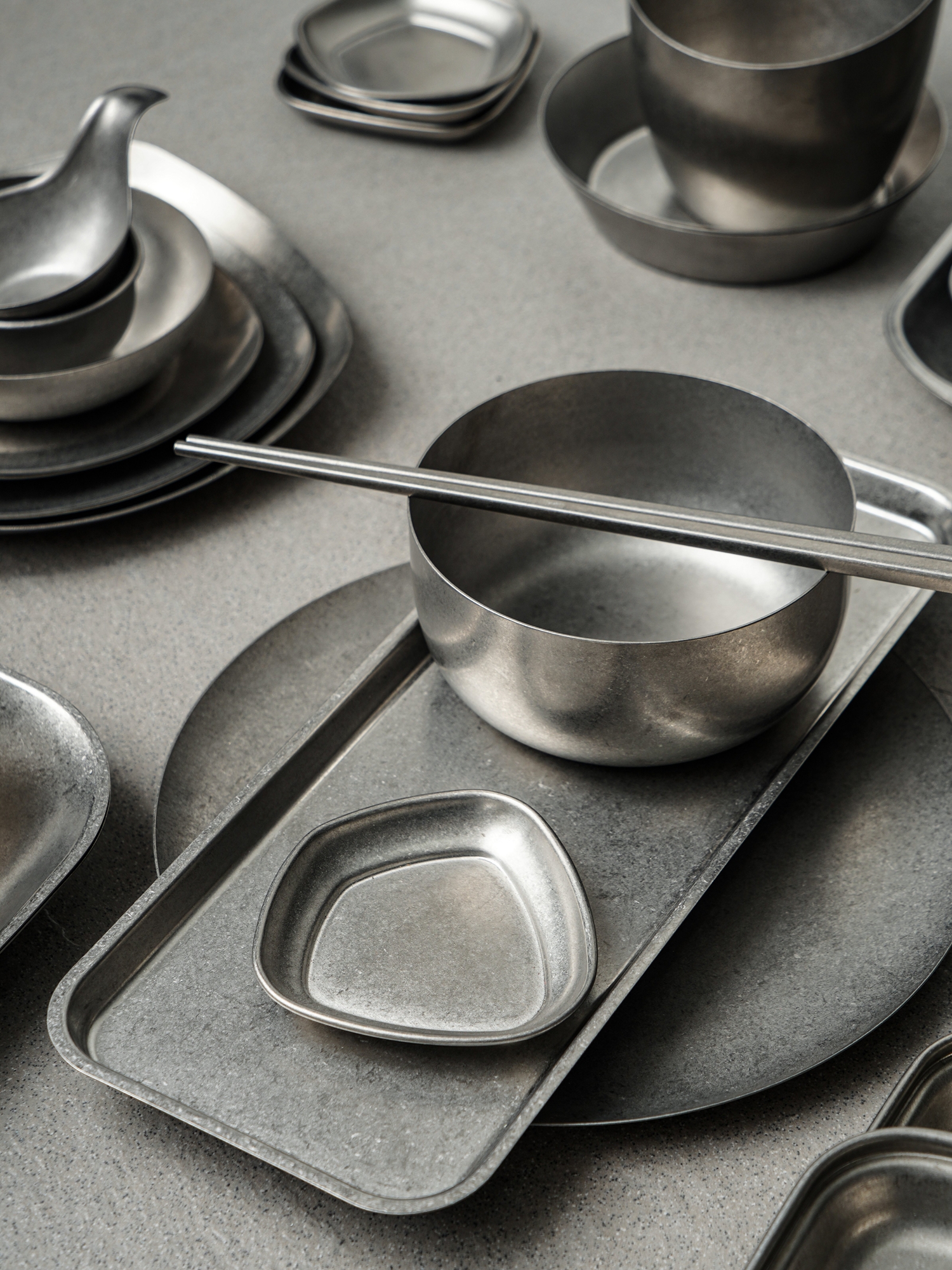 새로운 도시락과 더불어 레트로 식기 시리즈도 이번 전시의 하이라이트입니다. 복고풍의 눈송이 회색 모래 세척 공법을 채택한 각 식기는 여러 단계의 정교한 가공 과정을 거쳐 섬세한 무광택 질감과 독특한 회색 톤을 선사합니다.