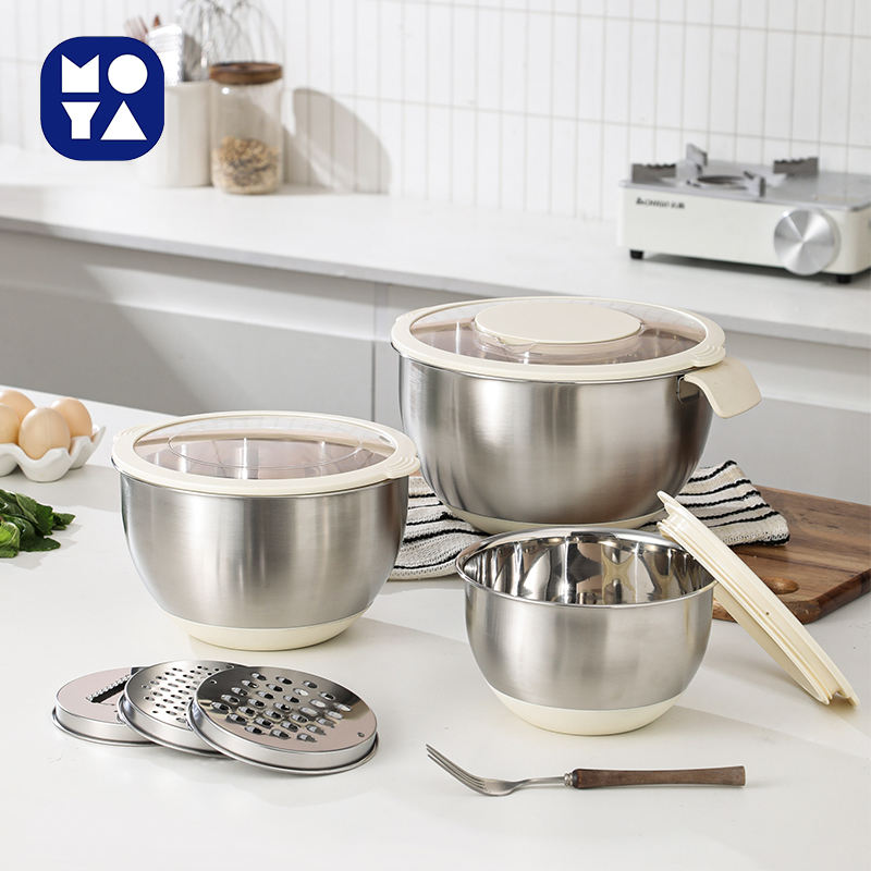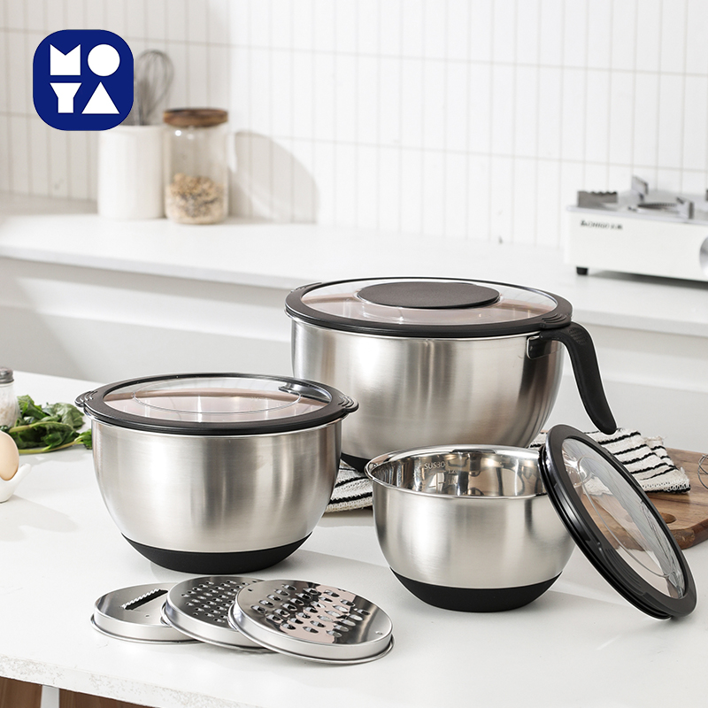 Polished Stainless Steel Salad Bowl Set | Grater & Transparent Lids | Nestable — MOYA