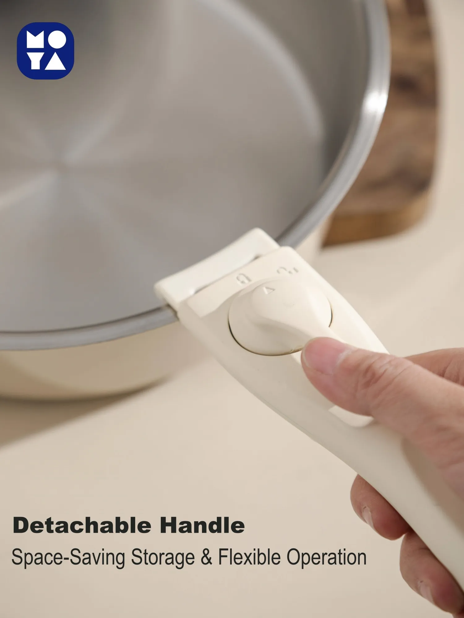 O design da pega amovível permite-lhe retirá-la sem esforço depois de cozinhar. Empilhe as panelas e frigideiras de forma organizada no armário, poupando 50% de espaço de arrumação - ideal para cozinhas pequenas, apartamentos ou autocaravanas. A pega tem também um design ergonómico, com um punho antiderrapante que se mantém frio ao toque, garantindo uma utilização confortável e segura.