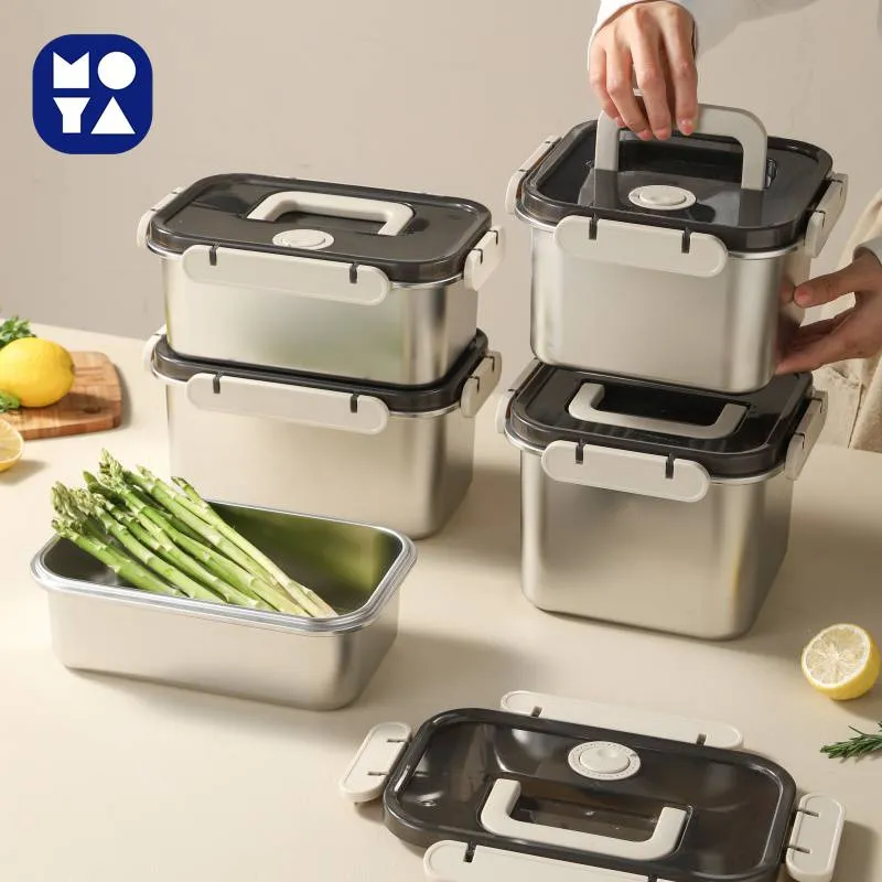 Recipiente para alimentos isolado a vácuo em aço inoxidável SUS 304 - Caixa de armazenamento destacável à prova de fugas com ventilação para casa, piquenique ao ar livre e uso comercial